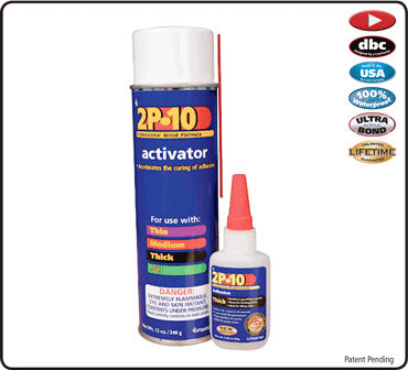 SKU: 151266The 2P-10 Solo Kit contains 2 oz. 2P-10 Thick Adhesive and 12 oz. Activator. 2P-10 is a two-part ten-second adhesive. Just apply the adhesive, then spray the activator and stick it together.