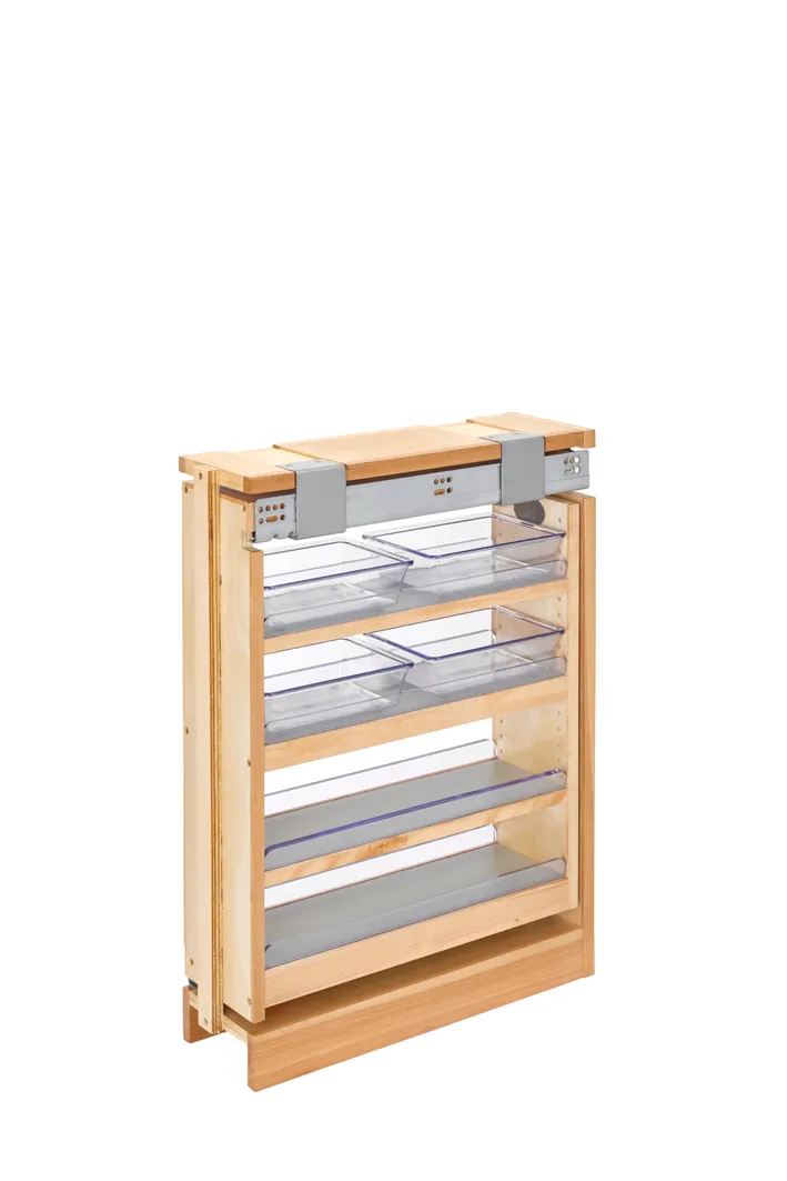 SKU: 275031Rev-A-Shelf’s fillers revolutionized otherwise wasted space in your vanity. Normally a infillerin or extra space is simply covered up with a decorative front, but with Rev-A-Shelf’s line of fillers, it turns that otherwise waste space in to useful space. Fillers are intended to be installed in new cabinet construction and will not work in existing cabinets. This pullout features natural maple construction, full-extension, TANDEM, 110 lb. rated slides with BLUMOTION soft-close, and four shelves with acrylic accents.