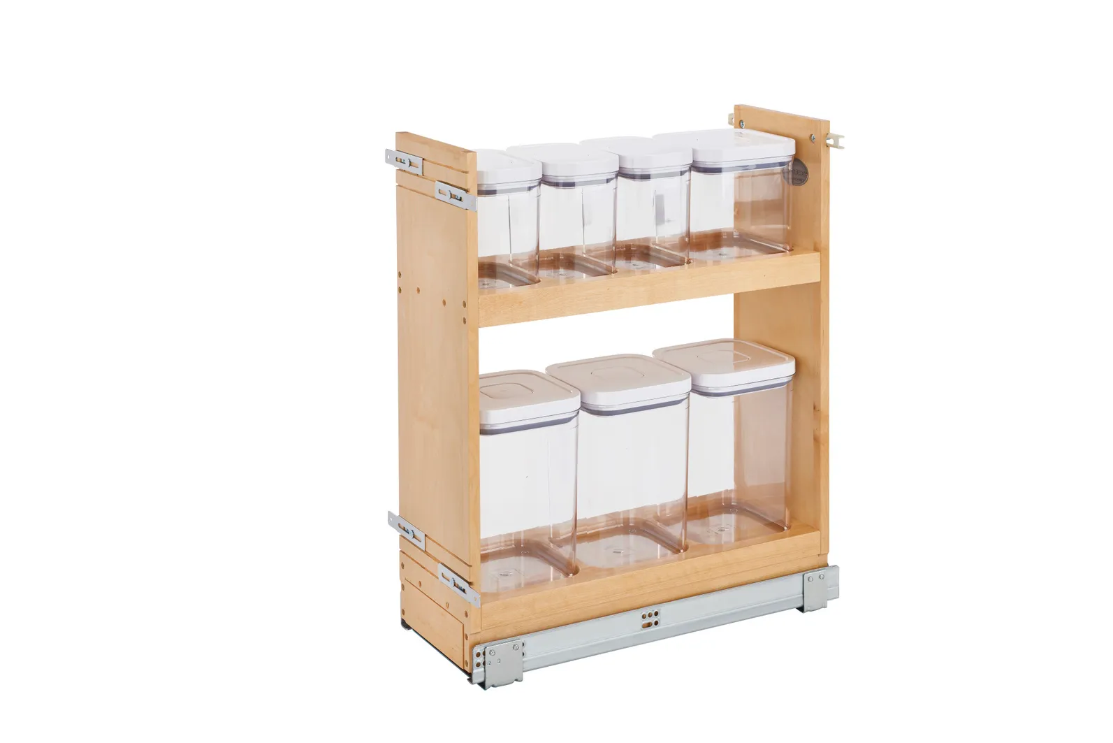 Rev-A-Shelf Wood Base Pull-Out Cabinet OXO Organizer w.Blumotion Soft-Close Slides 8in Maple