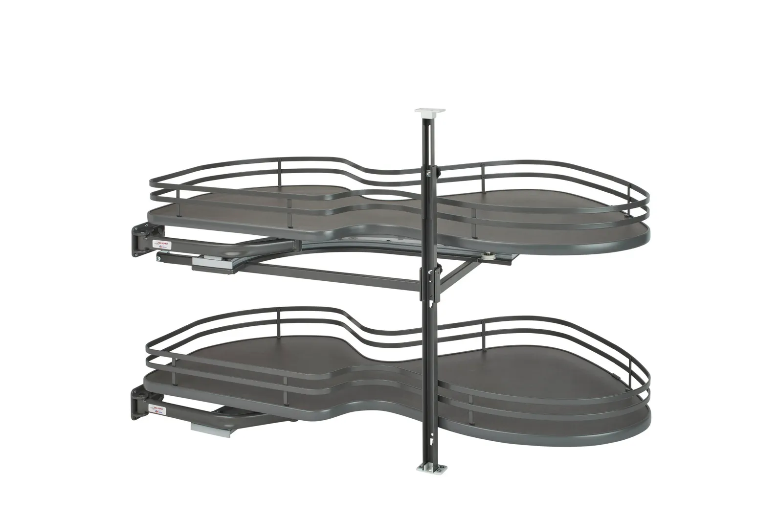 Rev-A-Shelf 2-Tier Solid Bottom Shelves for Left Door-Blind Right Corner Cabinet 21in Orion Gray