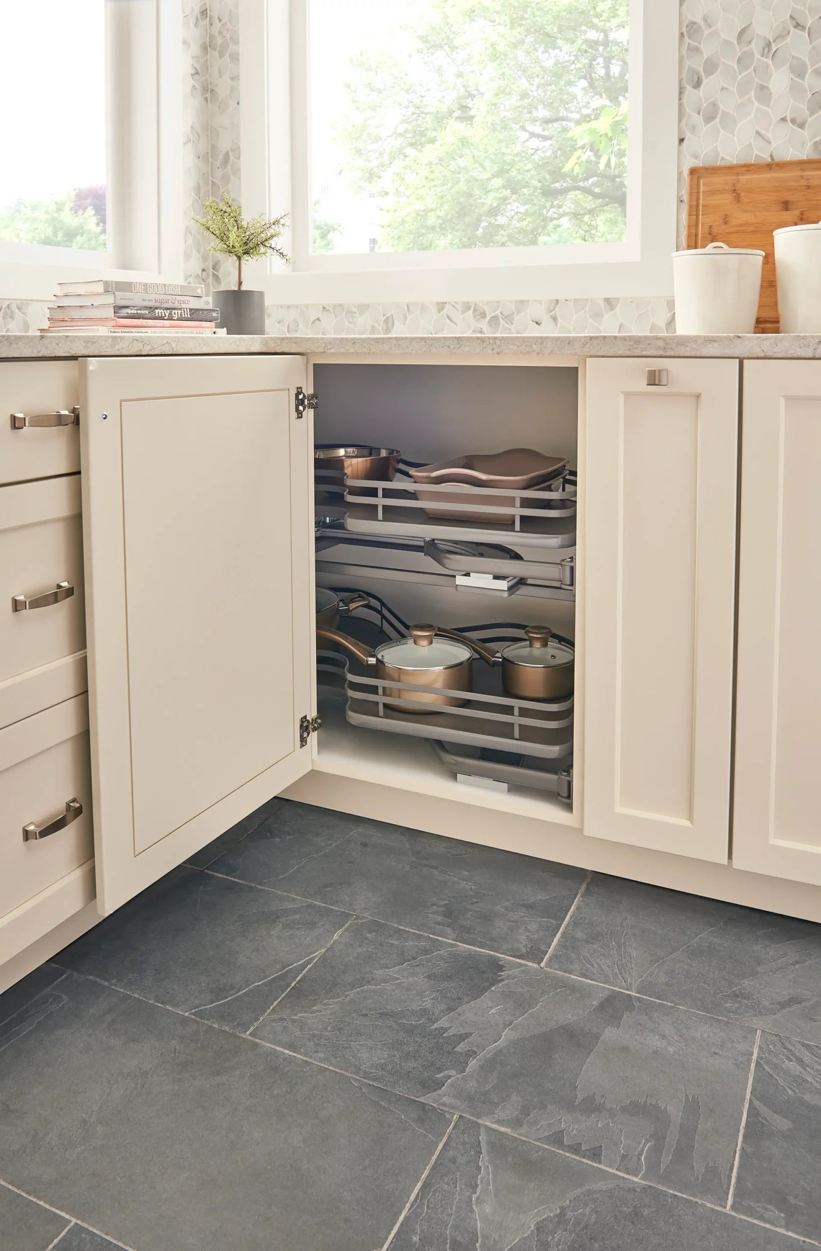 Rev-A-Shelf 2-Tier Solid Bottom Shelves for Right Door-Blind Left Corner Cabinet 21in Orion Gray