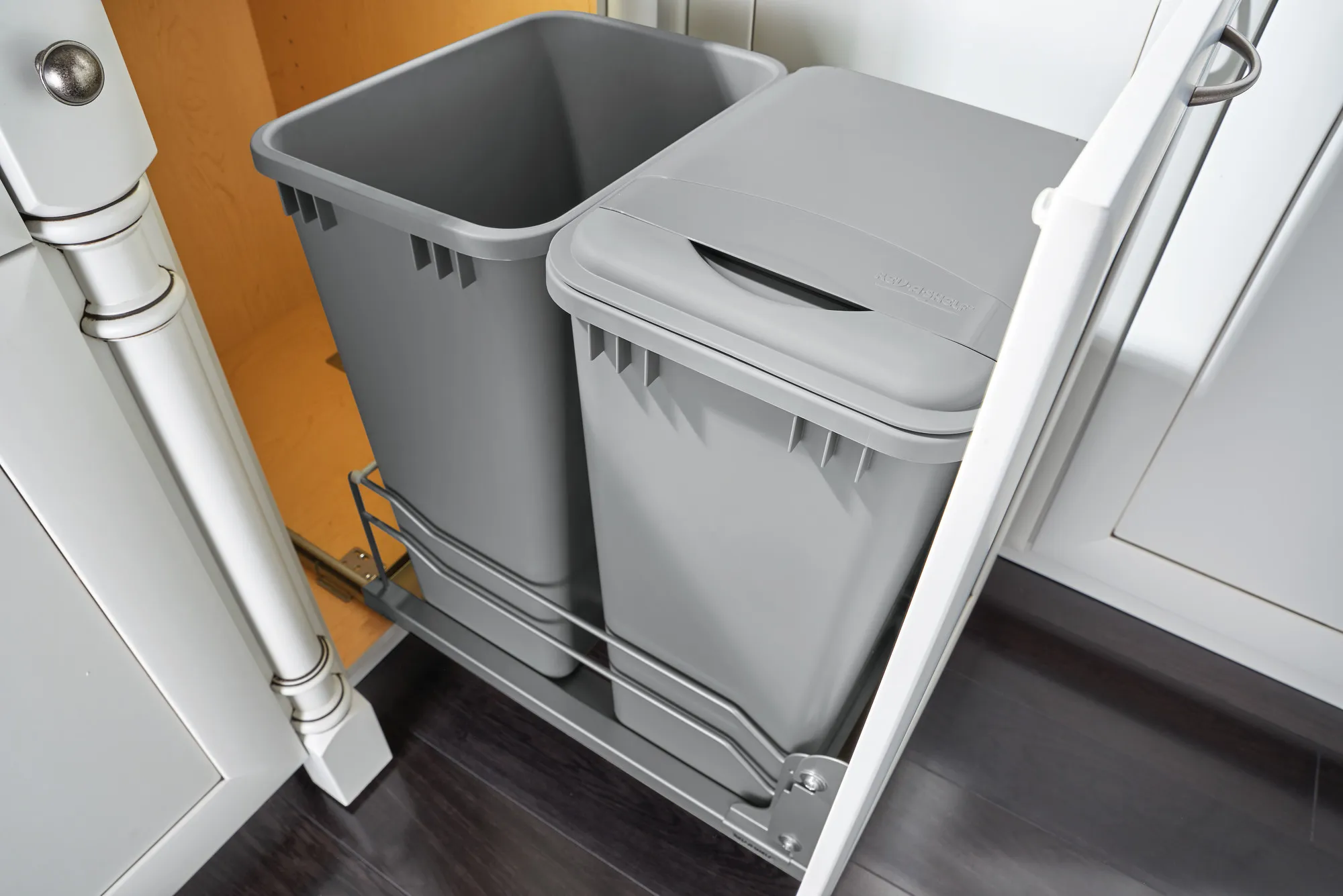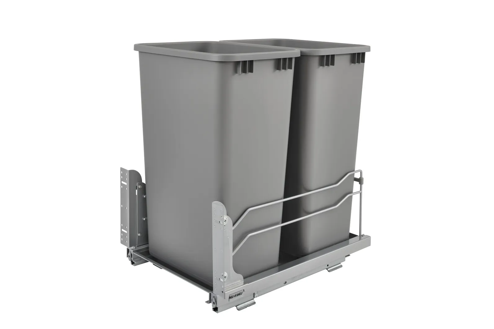 Rev-A-Shelf Steel Bottom Mount Pull-Out Double Waste Container w.Soft-Close 50qt Silver