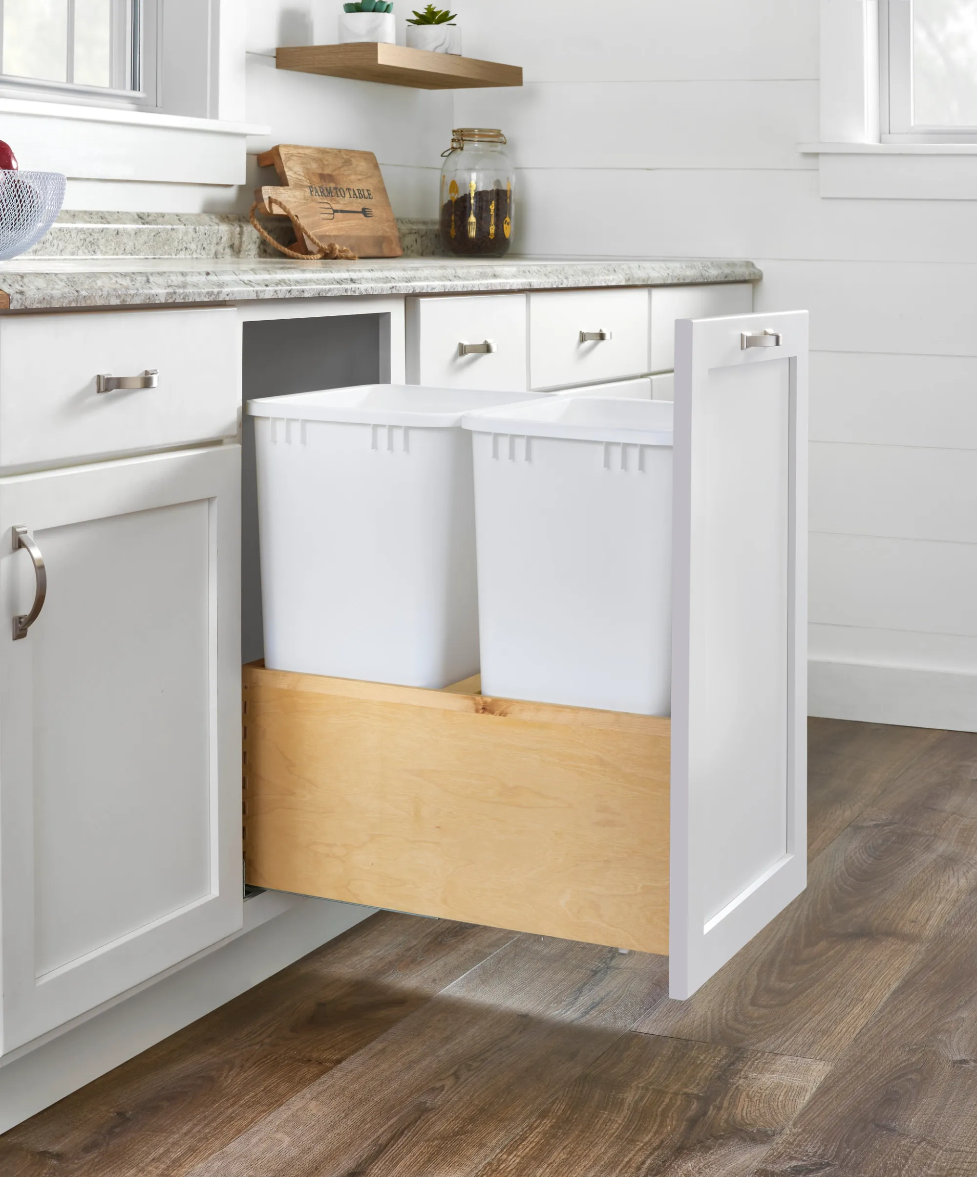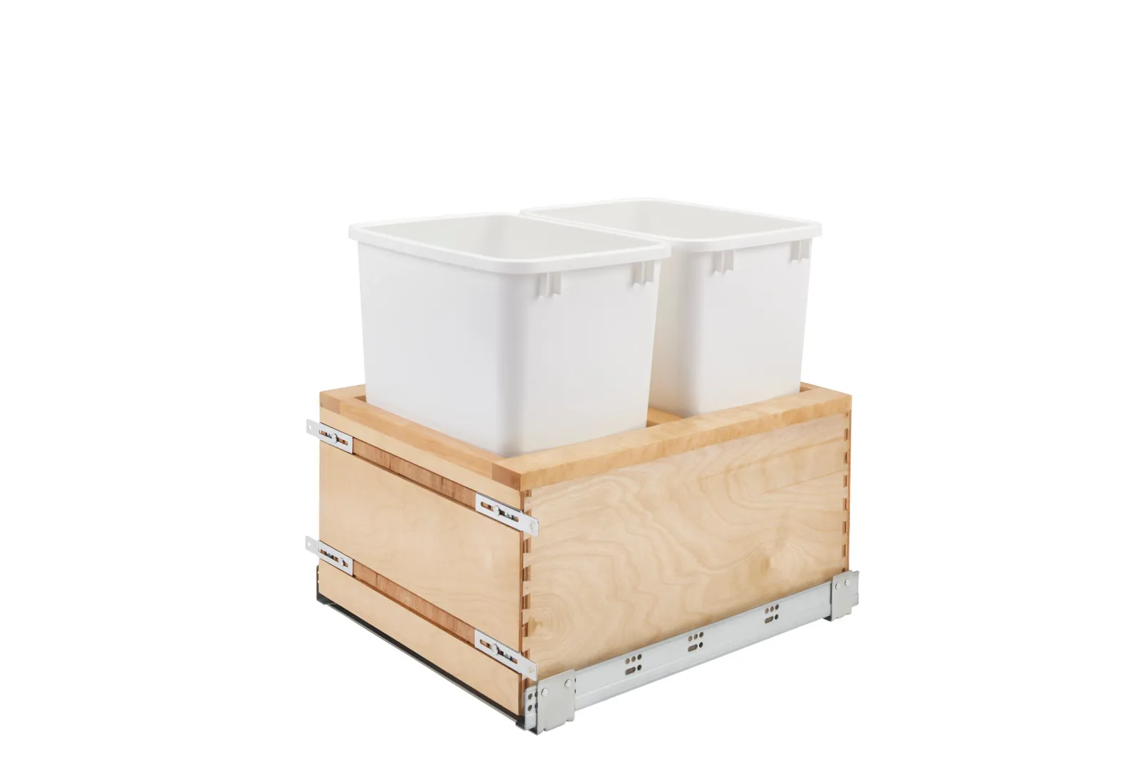Rev-A-Shelf Maple Wide Bottom Mount Double Pull-Out Waste Container Cabinet w.Undermount Soft-Close Slides 35qt White