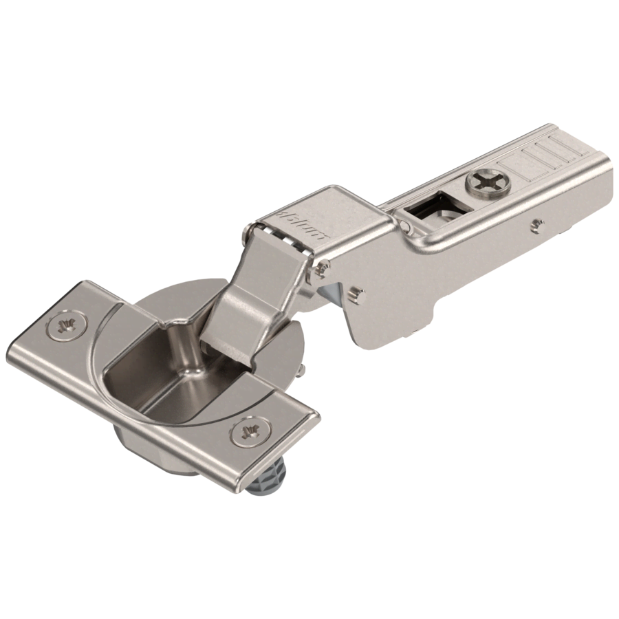 SKU: 108077CLIP top hinges are concealed hinges for cabinet doors and guarantee trustworthy function and attractive design. Doors can be attached and removed quickly without tools – they snap on and off. Variable three-dimensional adjustment and cam adjustment are available to save time. They work in almost any hinge application because of the wide variety of mounting plates available, meaning these hinges can be used in frameless and face frame cabinets.