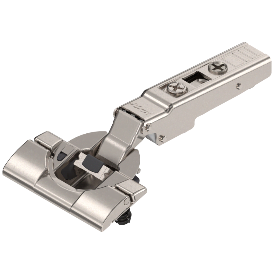 SKU: 108022With CLIP top BLUMOTION hinges, doors close silently because the BLUMOTION soft-close feature is built into the hinge cup. Soft-close BLUMOTION adapts to the dynamics of every door, so all doors close smoothly, regardless of size, weight, or the force used when closing them. The BLUMOTION feature can be deactivated on one or both hinges to ensure doors close at the right speed. Snap these doors on and off with CLIP technology and make easy three-dimensional and cam adjustments.