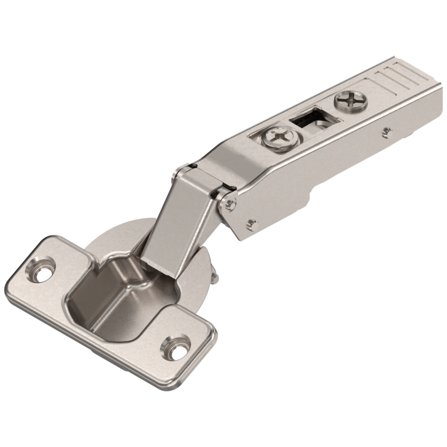 SKU: 108103CLIP top hinges are concealed hinges for cabinet doors and guarantee trustworthy function and attractive design. Doors can be attached and removed quickly without tools – they snap on and off. Variable three-dimensional adjustment and cam adjustment are available to save time. They work in almost any hinge application because of the wide variety of mounting plates available, meaning these hinges can be used in frameless and face frame cabinets.