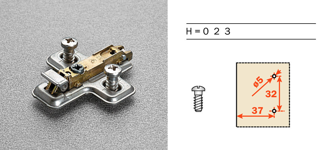 SKU: 279410Cruciform 1 Cam Domi snap-on mounting plates. For hinges Series 100, 200, 400, F, M, universal hinges and Silentia+