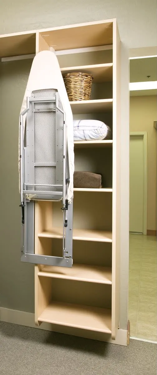 SKU: 275531When there’s no time to run to the laundry room and dig out the ironing board, Sidelines by Rev-A-Shelf comes to the rescue! Now there’s room for the ironing board right in the closet with your clothes. Hugging a vertical panel, our space-saving, patented, Deluxe Elite Swivel ironing board is available at a moment’s notice to help perfect your day’s outfit. In a snap you can slide it out, swivel and lower the unit into position. Iron not included.