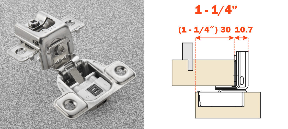 Salice 1-1/4″ Overlay (CUR3AD9R) SOFT CLOSE Dowelled Face Frame Silentia Excentra 3 Cam Adjustment Hinge Nickel