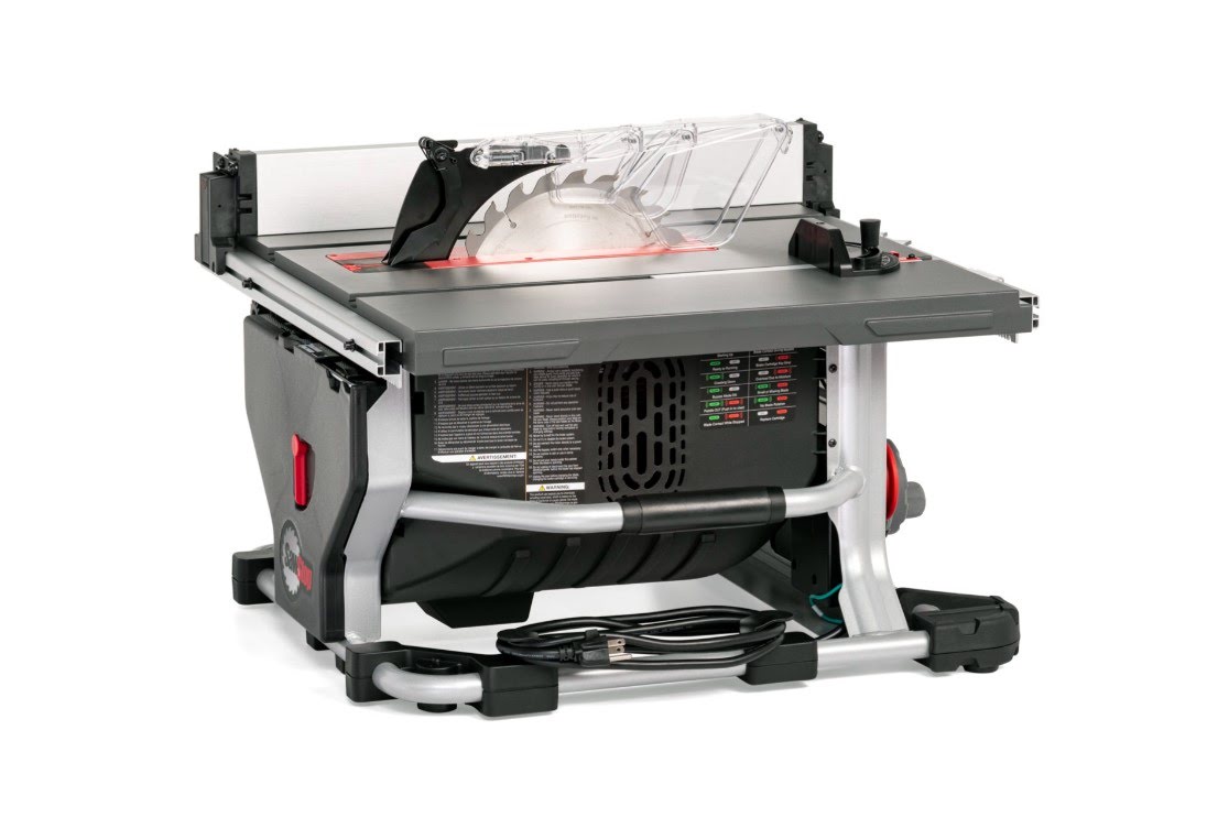 SAWSTOP’S PATENTED SAFETY SYSTEM: Stops a spinning blade on contact with skin. The blade stops in less than 5 milliseconds, and drops below the table, minimizing a potentially life-altering injury to a mere scratch.
